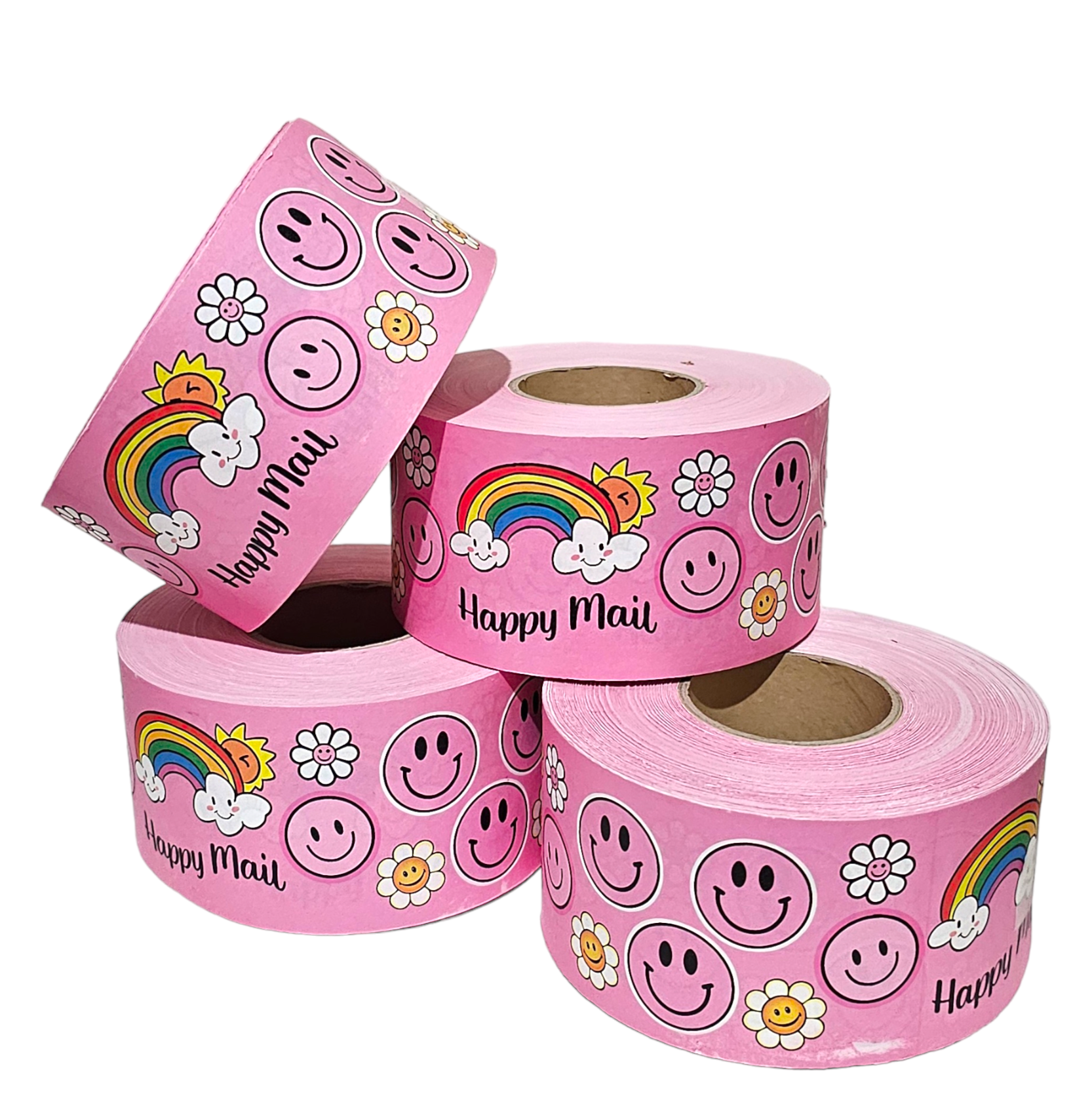 This cute packaging tape features a pink print with Smileys, Rainbow and Smiley Daisies. This will surely stand out and create a delightful unboxing experience for your customers or friends.
