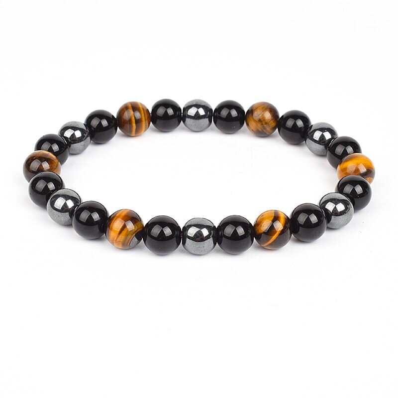 This Triple Protection Tiger's Eye, Hematite & Black Obsidian Bracelet combines in one jewel the most powerful protective stones and is remarkable for its sublime colors.